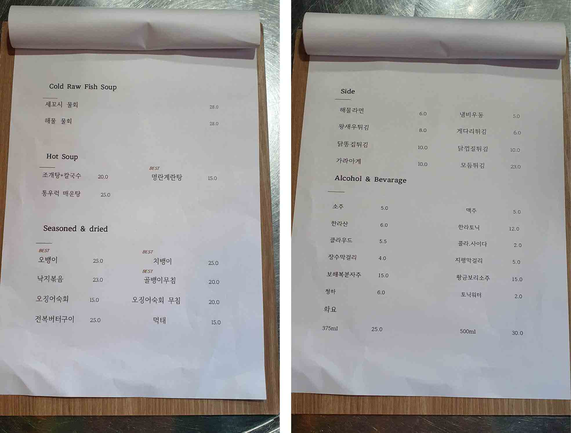▲ 망원역 해물장수(망원세꼬시 해물포차) 메뉴판