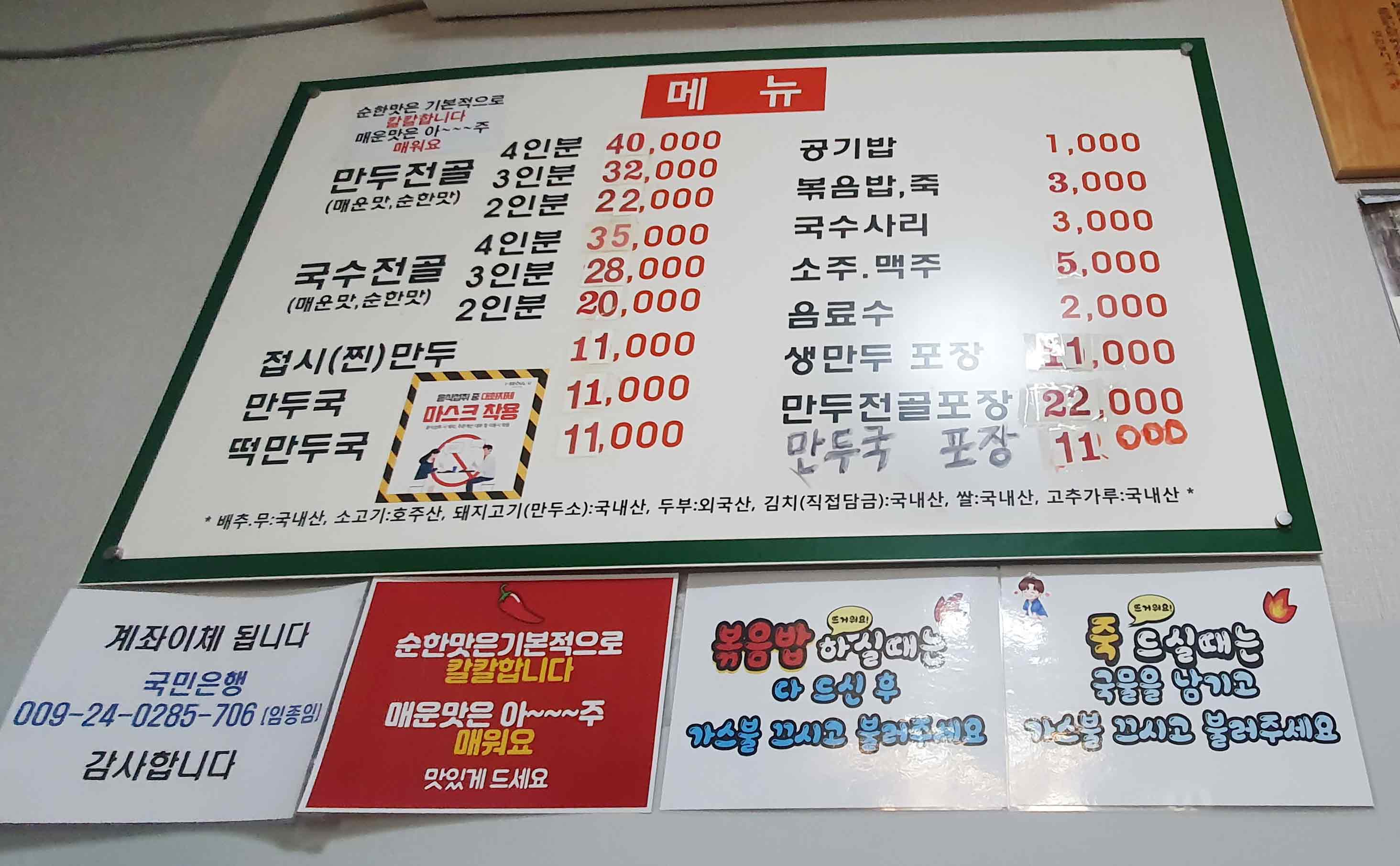 이북식 손 왕 만두 만나식당 이용안내